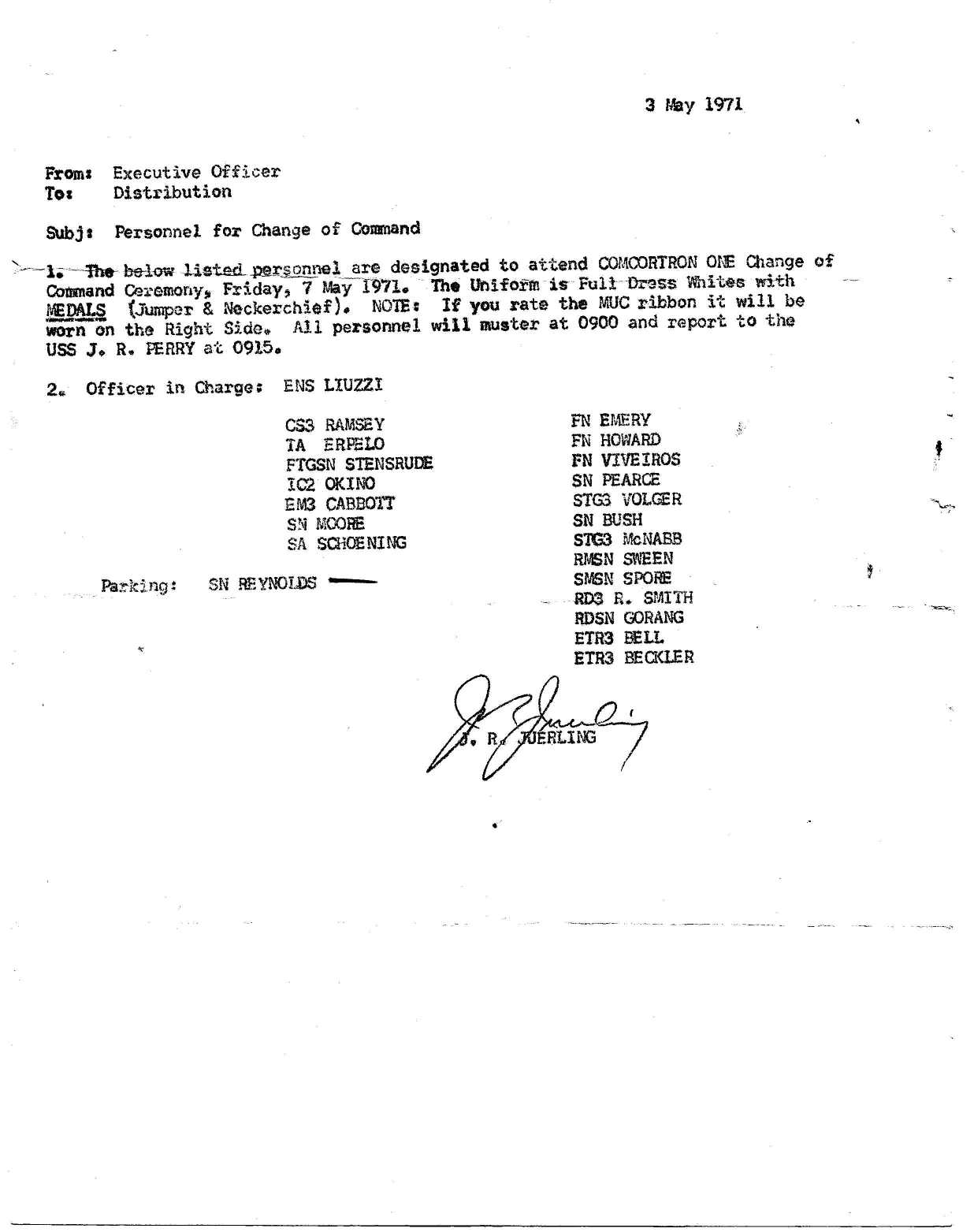 Orders from the XO, J.R. Juerling, to those who will attend the