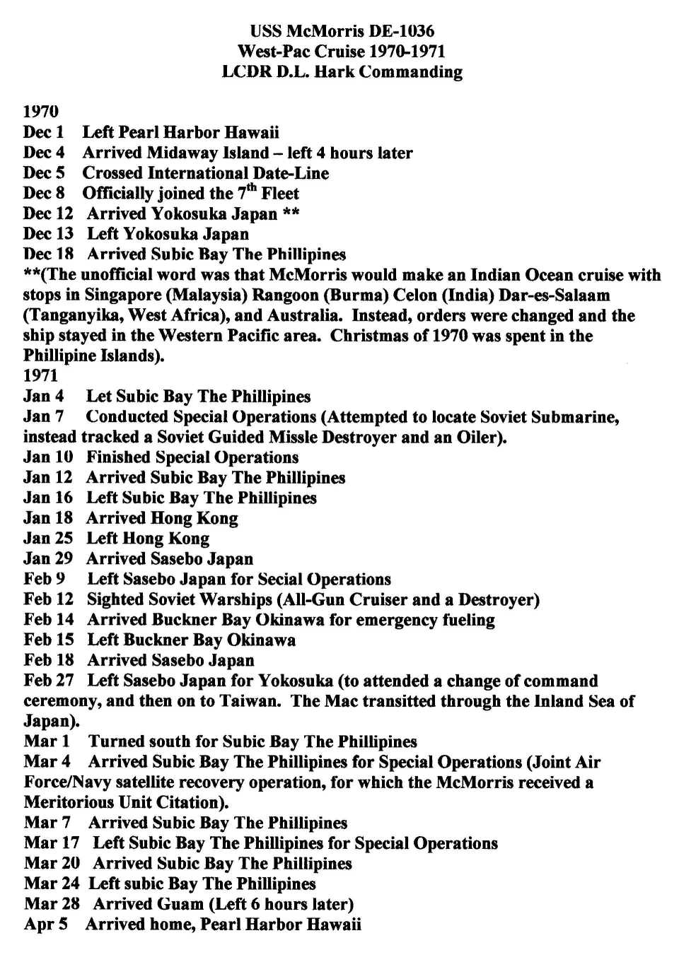 West-Pac cruise dates 1970-71. Note...the Mac did not earn the